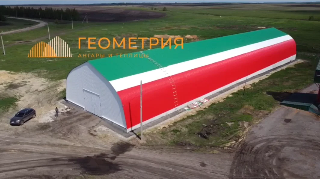 Ангар 18х82 метра, для хранения зерна. Триколор Республики Татарстан.