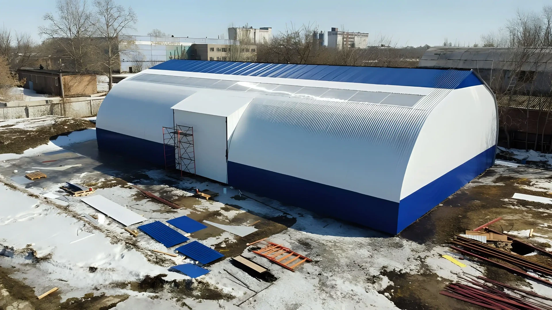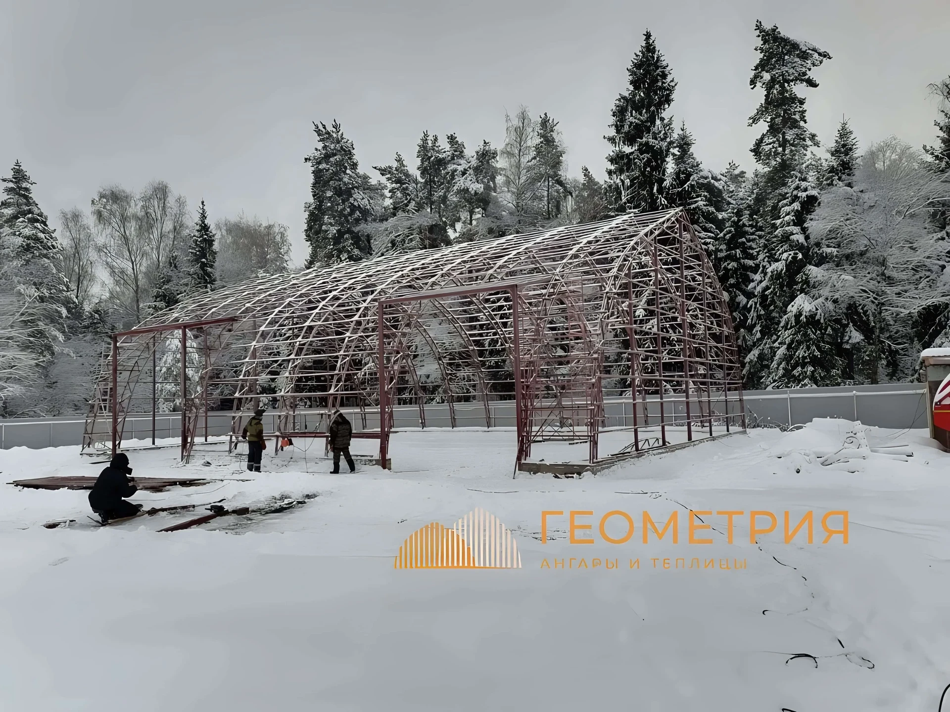 Строительство каркасного ангара зимой