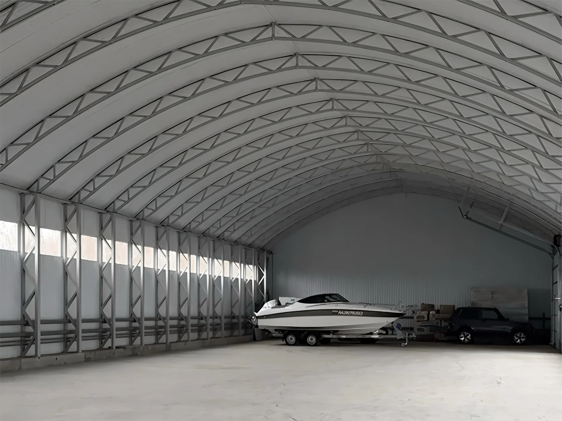 Прямостенный ангар с арочной крышей изнутри